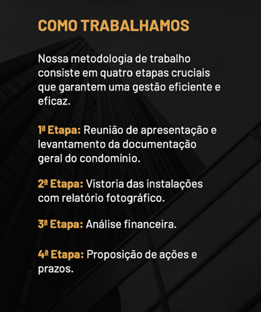 Apoio completo na gestão condominial, promovendo a valorização do patrimônio e a satisfação dos moradores.