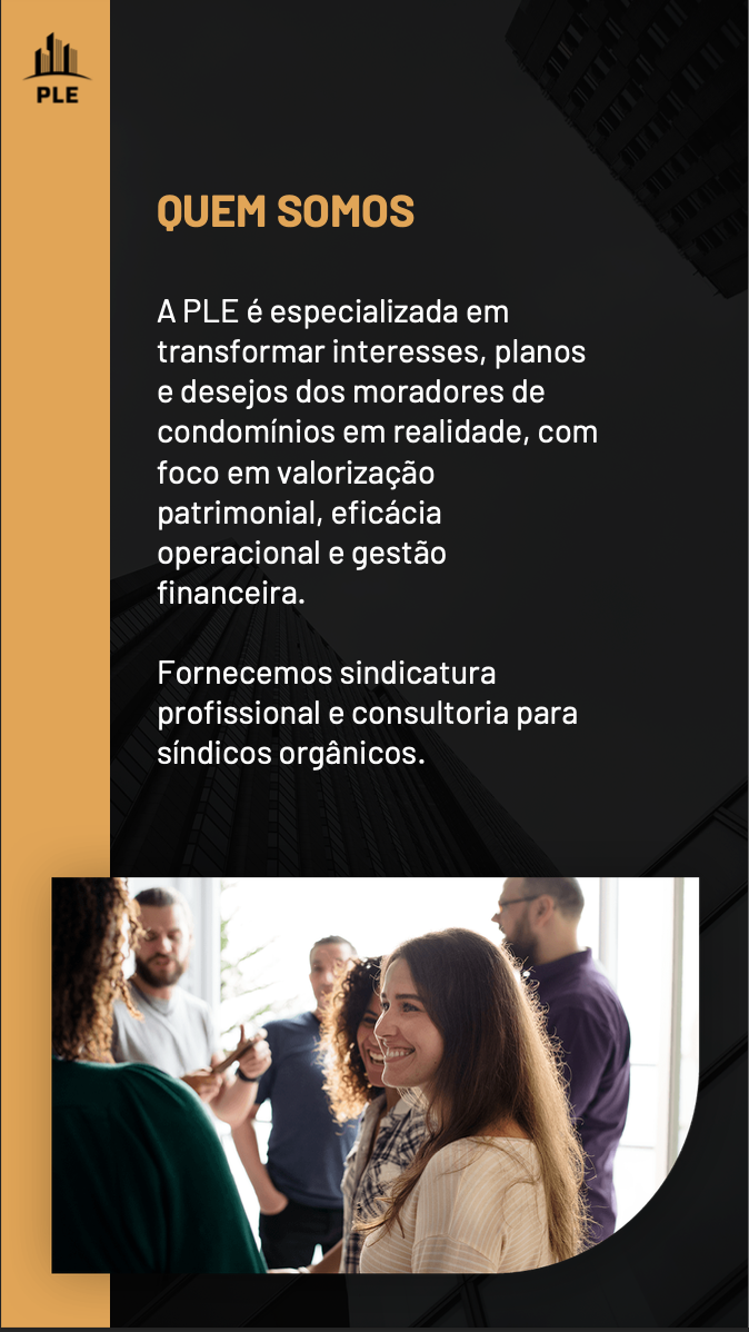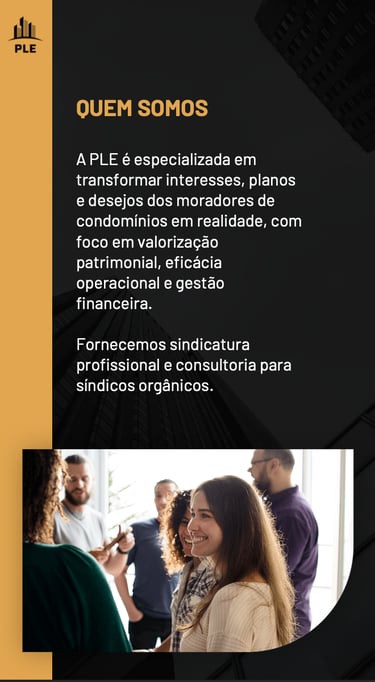 Na PLE nossas soluções visam aprimorar a valorização patrimonial e a eficácia operacional, oferecendo sindicatura profissional e consultoria dedicada para síndicos que buscam excelência na gestão de condomínios.